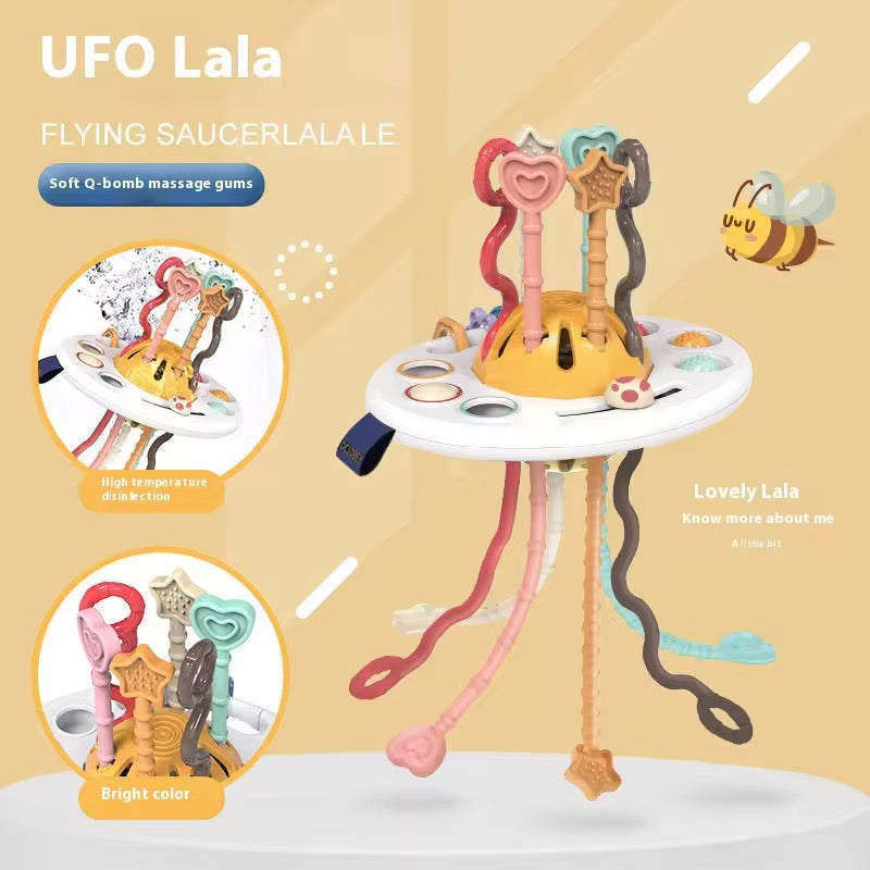 Introducing our baby pull string! Designed for 6 months and above, this versatile toy offers string pulling, tactile impressions, pressing down, and sliding from hole to hole. With different textures to enhance grip and development of cognitive skills. A must-have for every growing baby.