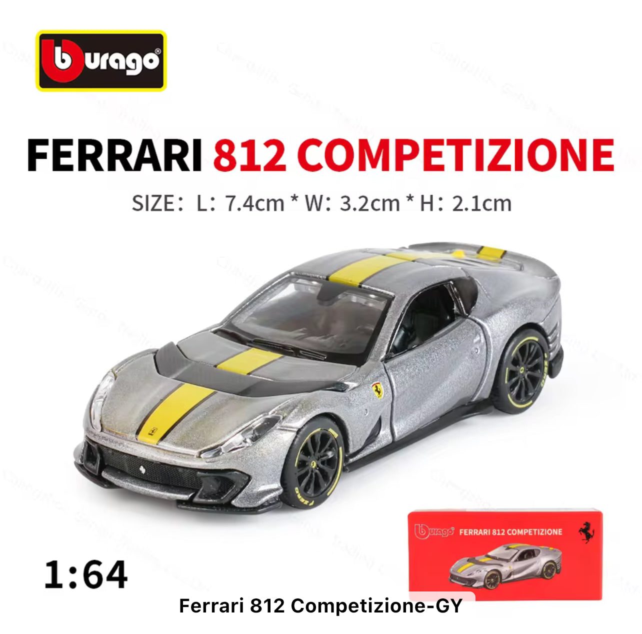 1:64 Bburago Scale Model Die Cast- Ferrari - 812 Competizione - Silver - Moving Parts