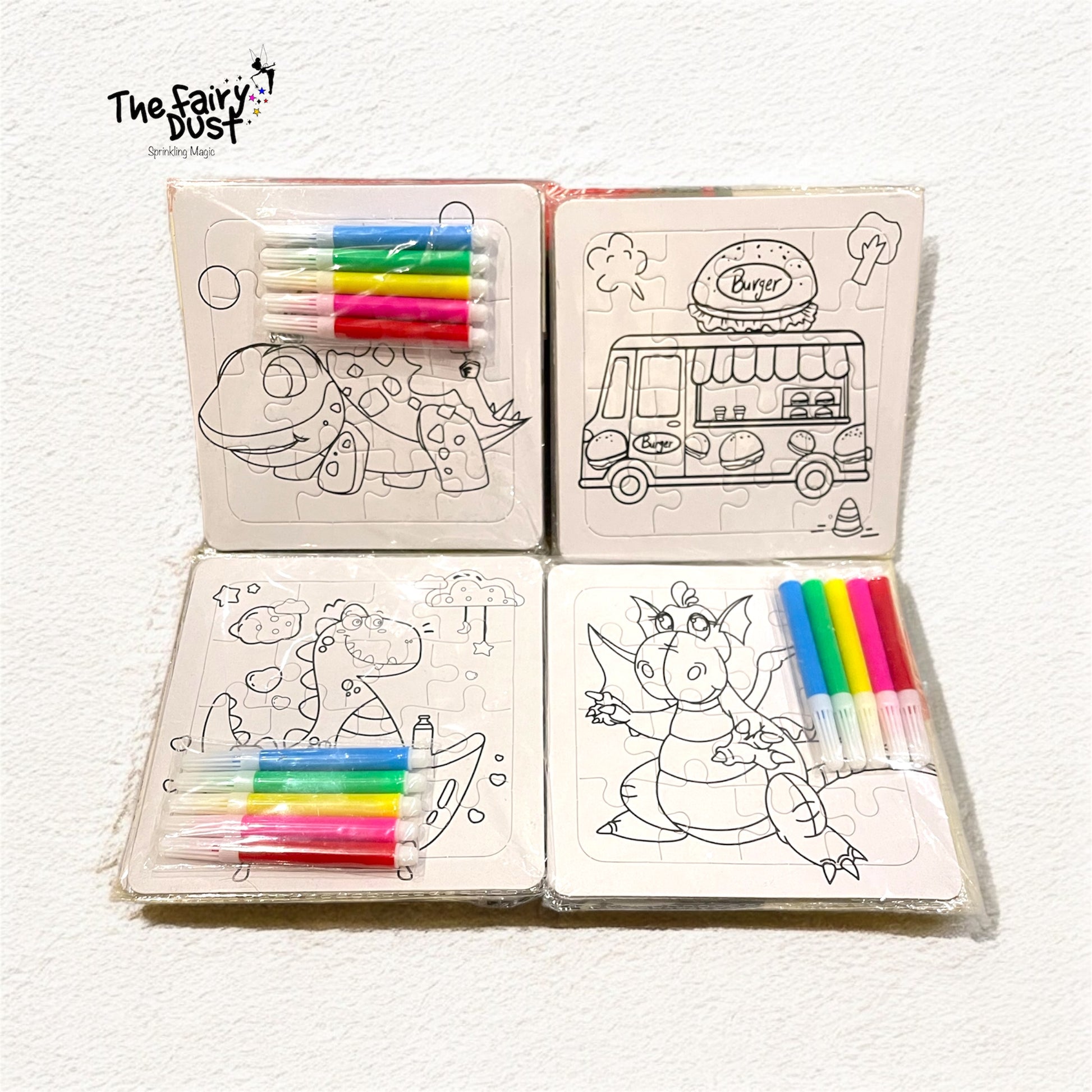Unleash your child's creativity with our DIY Colouring Puzzle for Kids - Pack of 3! This one-of-a-kind set includes 3 fun and challenging puzzle designs, perfect for keeping your little ones entertained. With mini sketch pens included, it's the ultimate travel companion for your kids!