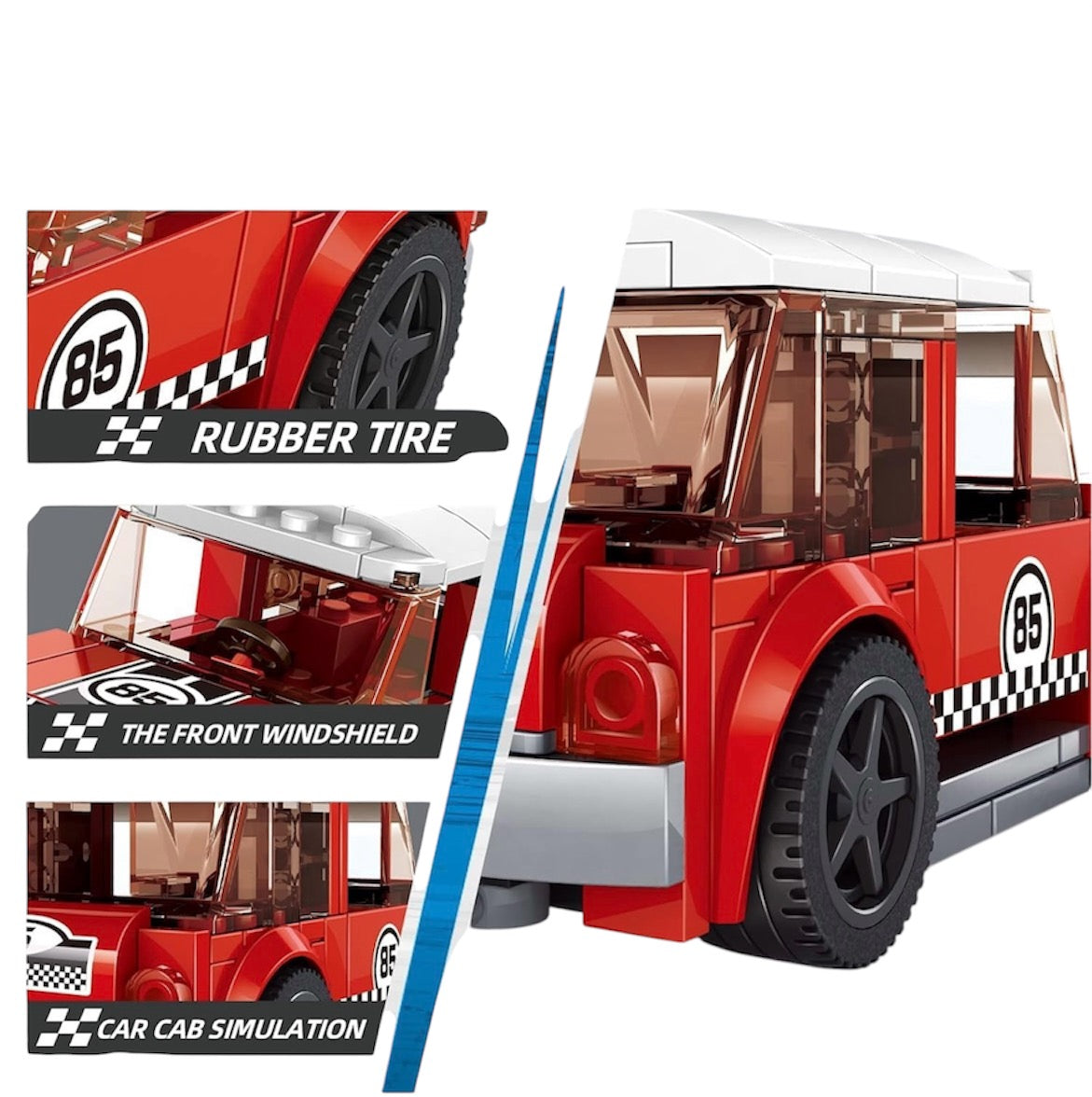 The 115-piece Hatchback brick toy car is a compact building set designed to replicate the iconic look of a Mini Cooper in miniature form. This set includes finely detailed pieces that capture key design elements of the car. The build kit is suitable for car enthusiasts, collectors, and children, offering a fun and relatively quick assembly process. Once complete, model showcases a colorful, nostalgic design and makes a great display piece.